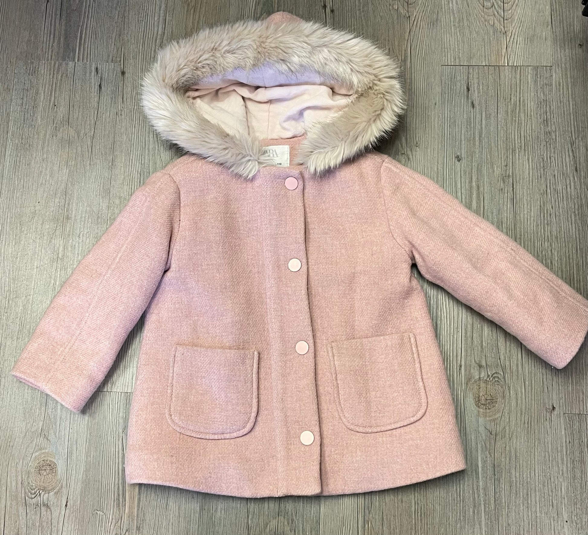 Pink Zara Fuax Fur Hooded Coat, 4-5Y