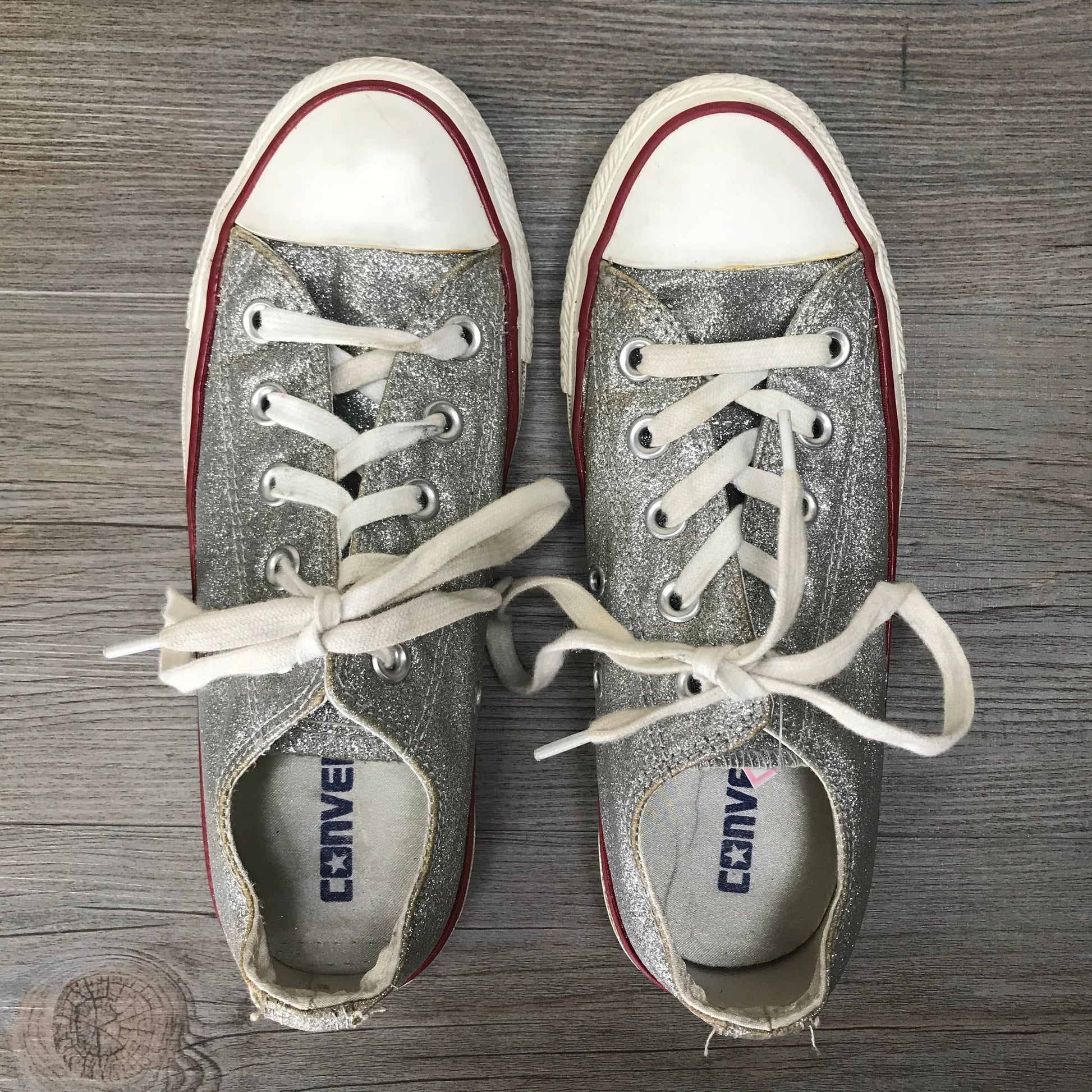 Silver Converse Lace Up Glitter, 5.5Y